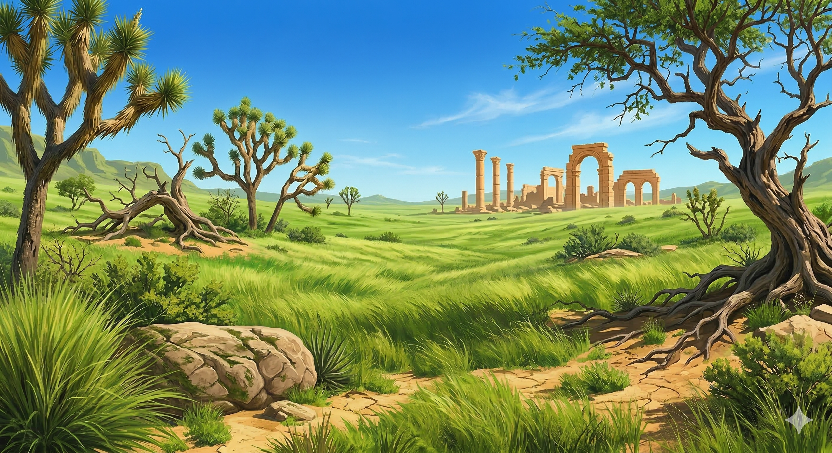 Planícies douradas e ruínas ancestrais banhadas por um sol eterno; o berço da esperança e o ponto de partida de todo herói.